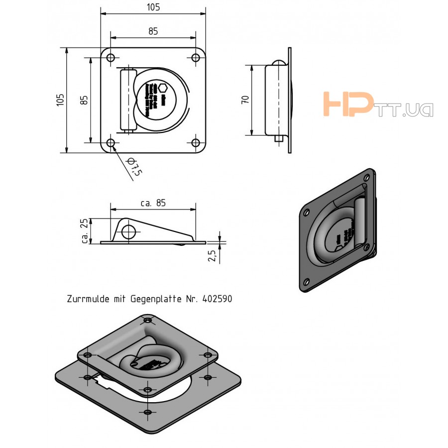 Петля крепления груза Winterhoff ZBF 50-1Нагрузка: 150 кгМатериал: стальОбработка: горячее цинкован..