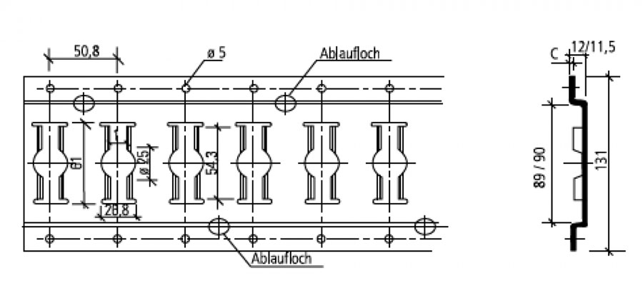 Исполнение: с перфорацией и отверстиями 25 мм