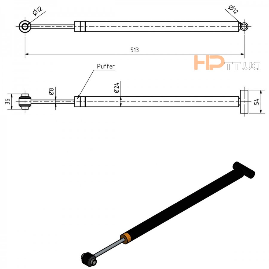 Поршневий шток (без монтажної втулки): Ø8 x 110 мм