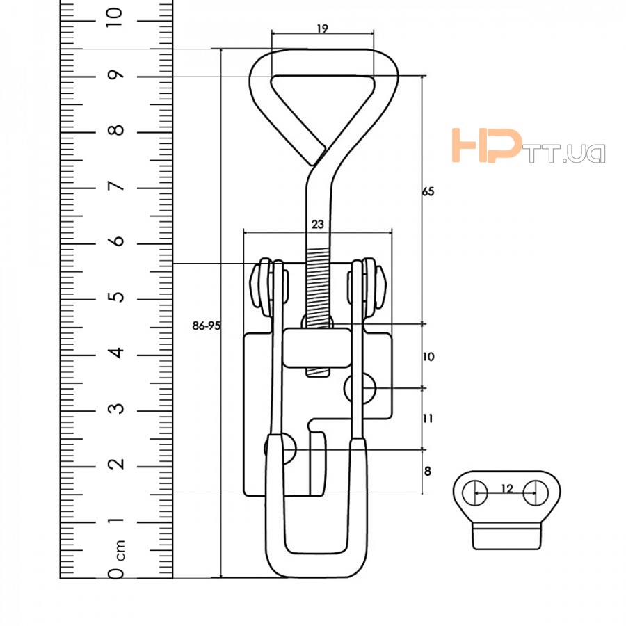 Натяжний замок для ящика HP-trailer з регулюванням довжини та вушком для замка, 95 мм AL2445+Z