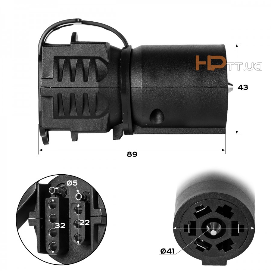 Розетка американська HP-trailer 7 контактна 6-24 Вт 55416-1Характеристики:Станда..